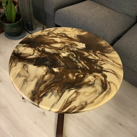 Rundt og solid marmorbord til salgs. Bordplata ligger løst på understellet. Veldig pent brukt.