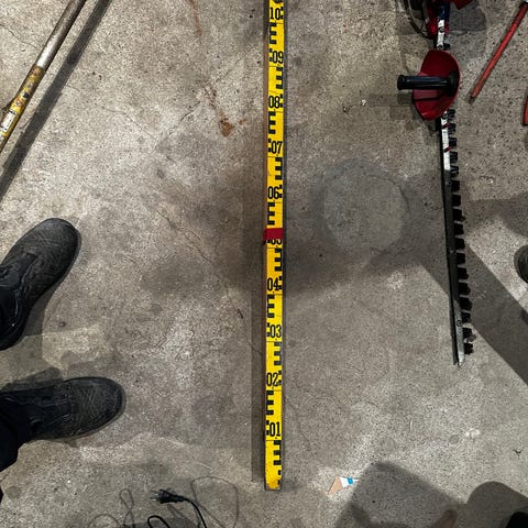 Målestaven er +30cm lang og justerbar fra ~1 cm til +30 cm. Dette gjør at du enkelt kan stille inn og merke av ønsket kubbelengde. 20 cm markering gir deg 20/40 cm kubbelengder, 25 cm gir deg 25/50 cm kubbelengder, 30 cm gir deg 30/60 cm kubbelengder osv.