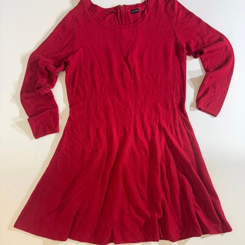 Fin rødfarge, rett fasong i stoff som faller fint
