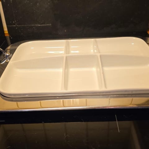 Praktisk snackfat i høybrent porselen