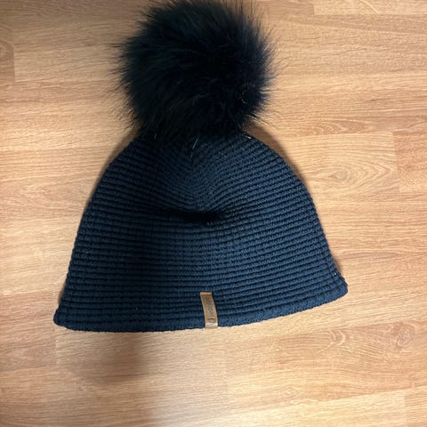 Fin mørkeblå strikket kari trå lue. Lite og pent brukt.