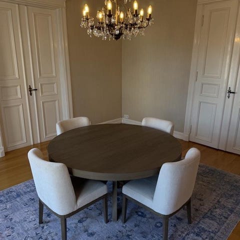 Rundt spisebord fra Gubi, 110 cm diameter som passer opp til 6 personer (perfekt til Gubi Beetle stol!).