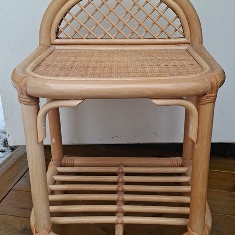 2 stykk nette kurvbord. Disse har kun stått under tak. De er lakkert