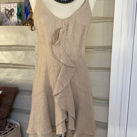 Sjekker interessen for denne nydelige sommerkjolen ✨ kun brukt en gang. 100% lin, fôr 100% bomull. Knelengde med split bak, princess line. Nypris 2600,- inkludert frakt, toll og moms.