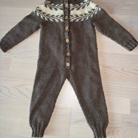 Kjempefin Marius kjøredress. Varm og myk strikket hel dress, med hull til bilsete.