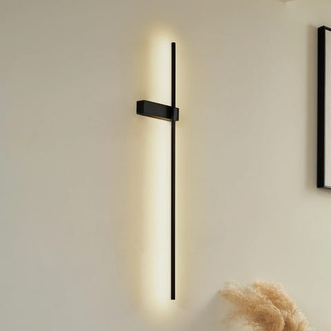Den stavlignende vegglampa sprer et koselig stemningslys i en vinkel ut fra veggen.