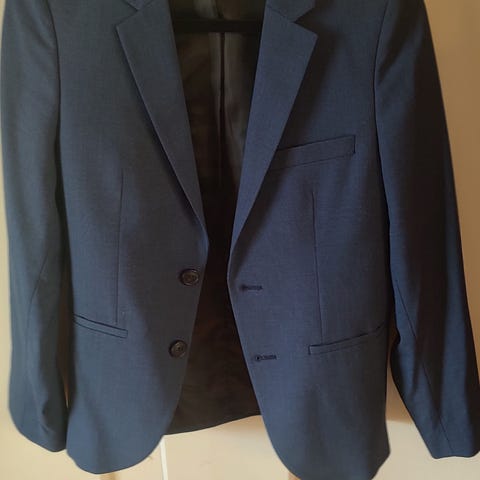 Brukt kun et par ganger. Se bilder for størrelse. Dressen fremstår som elegant. Passer en slank konfirmant. Dressen er smal i formen