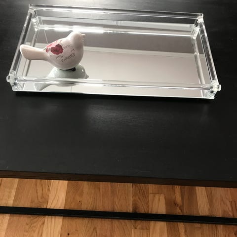Speilbrett i sølv kjøpt hos interiør butikken