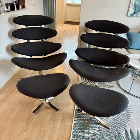 Coco lenestol fra Bolia med puff. Utgått modell.