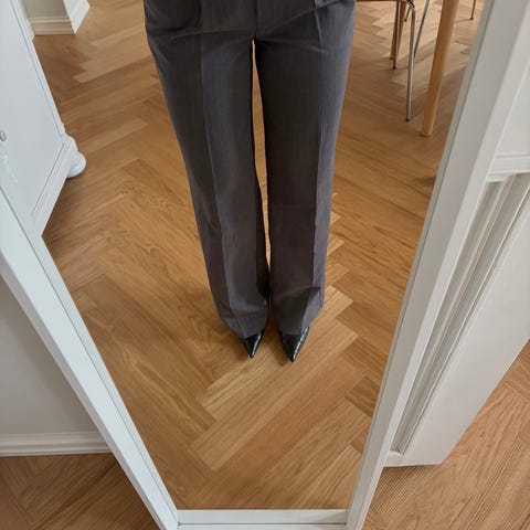 Pent brukt «dressbukse» fra Weekday i str M. Høy på livet og lommer på sidene. Jeg er 178cm, og den når meg til anklene☺️