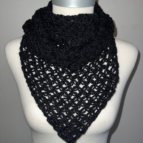 Sjal/skjerf heklet i englemasker/kjærlighetsknuter i garn av 40% ull, 40% akryl og 20% nylon selges. Har heklede sjal i mange ulike farger. Kan sendes mot at kjøper betaler porto.
