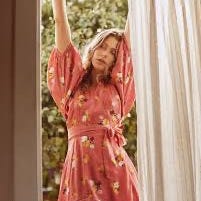 Fantastisk omslagskjole som er foret i skjørtet. 100% viscose og fantastisk blomsterprint. Kun prøvd på en gang. Som ny.