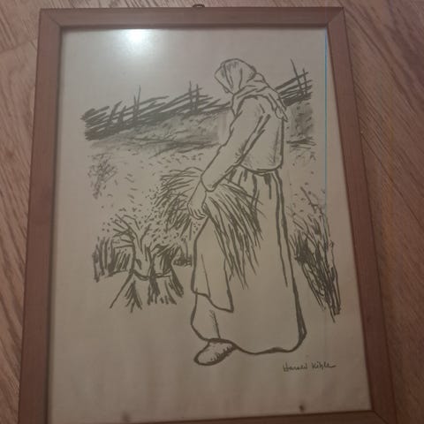 trykk av akvarell vurd. solgt. Motiv: Jesus med barn og lam. Signert/datert i platen n.t.v Rammemål: H: 45 cm. + B: 53 cm. Ant. orig. innramming.