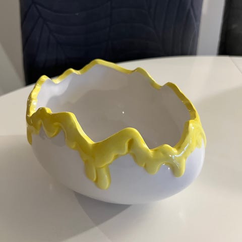 Selger pakke med 6 pynteegg av typen man henger opp med tråd. Kjøpt på HM home, ubrukt. Ser allikevel at to av eggene trenger litt lim imellom papiret en plass (vises på bildet).