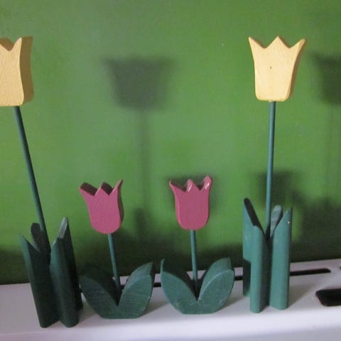 Ny påskepynt Tulipan fra tre selges. Høyden 23,5 cm. Jeg har bare et stk. igjen til salg. Kjøper betale frakt.