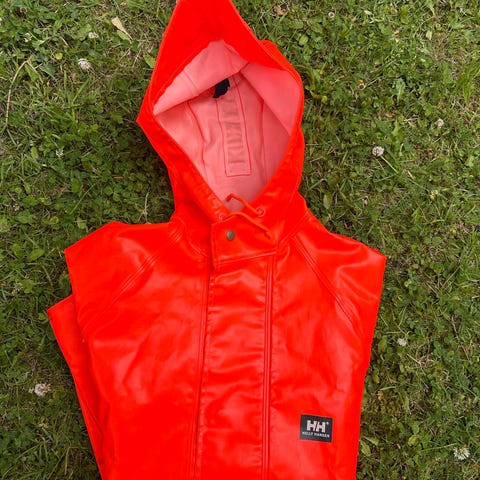 Hel og fin antydning til urenheter kun utenpå, fin og ren inni. Oljehyre, fiskeklær, selebukse. Veldig behagelig, god form