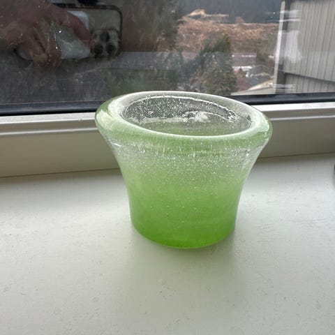 1 stk kunstglass i Limegrønn farge, frostet, muligens fra Hadeland.