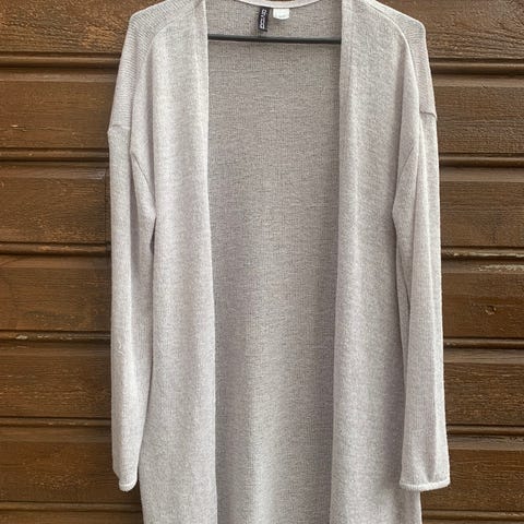 NY. Grå åpen cardigan. Lang. Finstrikket. ONLY.