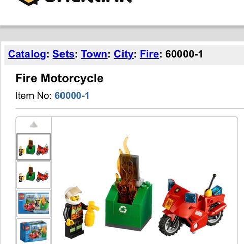 Lego juniors brannvesen (uten koffert) som passer for barn 4-7 år. Komplett sett, motorsykkel kommer limt mellom chassis og ramme da festemekanismen er ødelagt, men øvrige brikker er som nye.