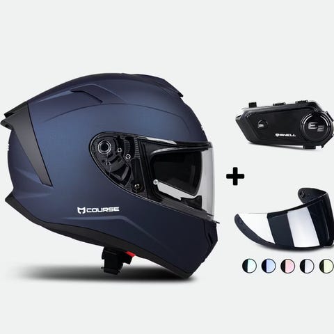 En integrert motorsykkelhjelm i matt sort med en Bluetooth 5.0-adapter som gir forbedret tilkoblingsytelse og lengre rekkevidde. Bluetooth-enheten leveres separat, men installasjonen er enkel og rask å utføre