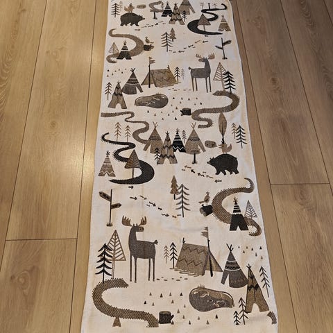 Veldig fin rund gulvmatte i 100% bomull fra SmallStuff. 120cm diameter og kan vaskes på 30 grader. God kvalitet og ligger pent på gulvet. Den er nå nyvasket og litt brettekant på bildet som flater seg ut etter en dag på gulvet :-)