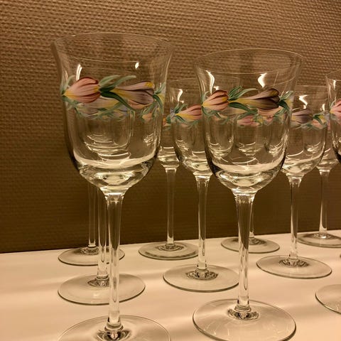 Unike nydelige vintage blå håndblåste hvit-, rødvin og snaps- glass