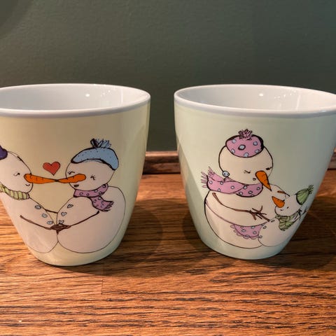 Kopp: Ø=ca 9 cm, Høyde ca 5,5 cm