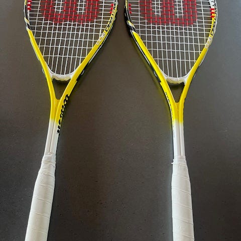 Flott racket m. trekk i spenstig farge. Selges kr 500 den befinner seg på Stjørdal, kan bringes til Trondheim eller sendes. Ring 95734121 for info, har flere i andre farger og modeller