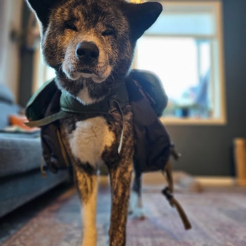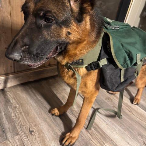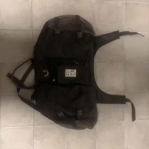 Kennel kløv, er usikker på størrelse men er for liten til min Rottweiler tispe så antar det passer smalere hunder. Helt og fint utenom at ringen til å feste line i er rusten. 500 kr for kløv og 200 kr for magebelte