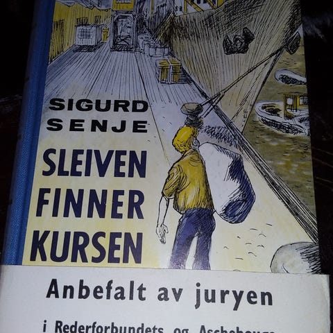 Sigurd Senje: Sleiven finner kursen, Aschehoug 1959. 147 sider. Litt slitasje og smuss på permer/rygg. Ren og pen materie.