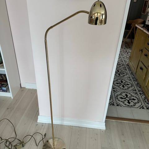 Messing lampe med halogen pære, fin ved godstolen når du trenger godt leselys til lesing osv. uten og forstyrre omgivelsene