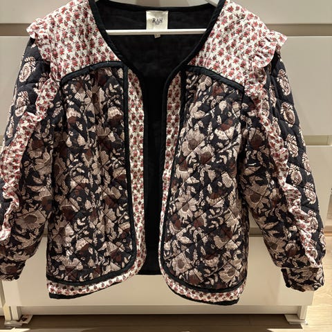 Fantstisk brokade blazer jakke fra den norske designeren Katrin Uri str S. Jakken er nydelig både til hverdags med jeans og lyse bukser eller over en lett sommerkjole. Kan også brukes hele året til mørke klær og som penantrekk. Koster kr 2.199 i butikk.