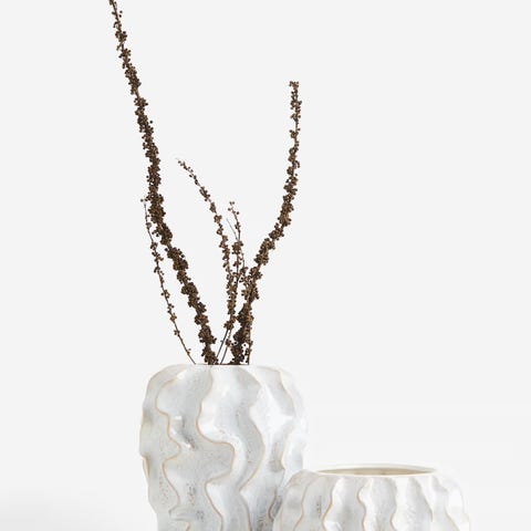 Størrelse smal og farge er beige. Høyde 21 cm åpning16 dybde 21