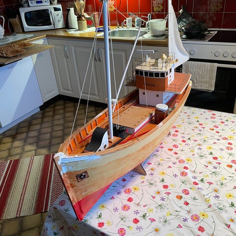 Flott bygget båt klar for radiostyring, det sitter motor i .