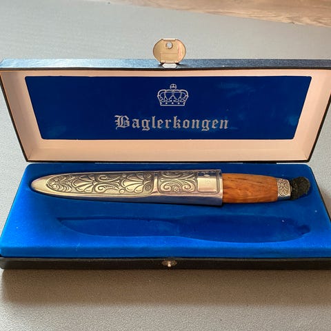 Beskrivelse: Baglerprinsen, slirekniv med tinnholk. Passer til alle bunader.