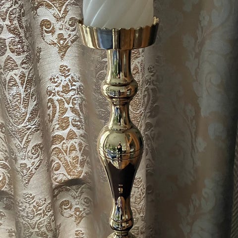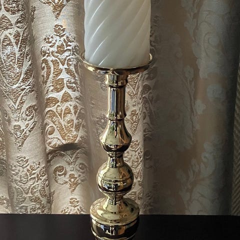 Emaljert lysestake fra 50-tallet. Dessverre er det gått litt av emaljeringen, se bilder.