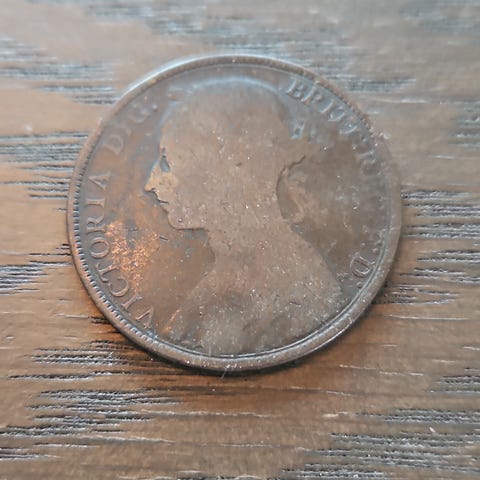 Fin rødbrun 1 penny fra 1949
