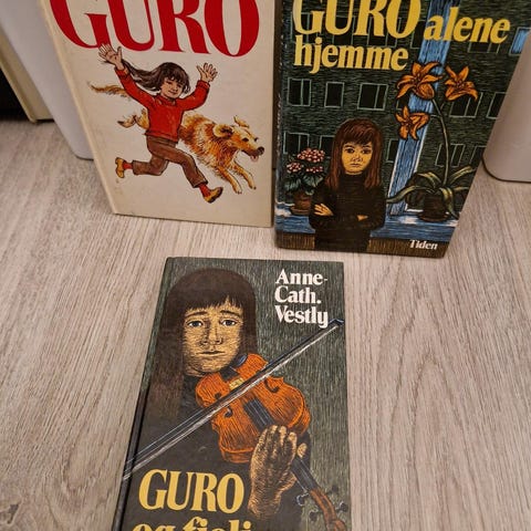 Guro alene hjemme (1977). FØRSTE UTGAVE. 160,-. Svært pen. Navnetrekk.