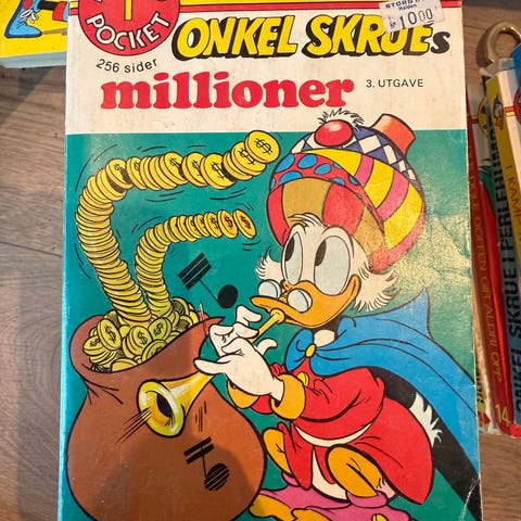 Stor samling med massevis av Donald Duck fra forskjellige årganger. Nedenfor er en totaloversikt over hva jeg har. Spør gjerne om du har noen spørsmål eller trenger bilder av noen spesifikke bøker/blader. Pris avgjøres basert på hvilke bøler/blader du er interessert i, standen på dem og hvor stort antall som kjøpes om gangen.