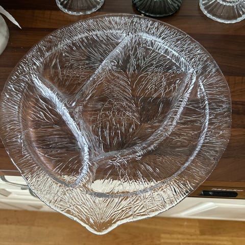 4 stk små skåler og 1 stk brikke i glass