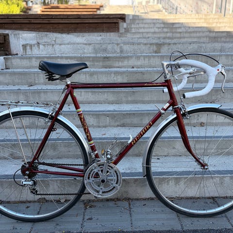 Pent brukt vintage Nishiki Road Master. Den stod på et låveloft i ca 20 år før jeg kjøpte den i 2019. Svært lite brukt siden 2021 da jeg flyttet ut av byen og denne klassikeren trenger å vises frem!