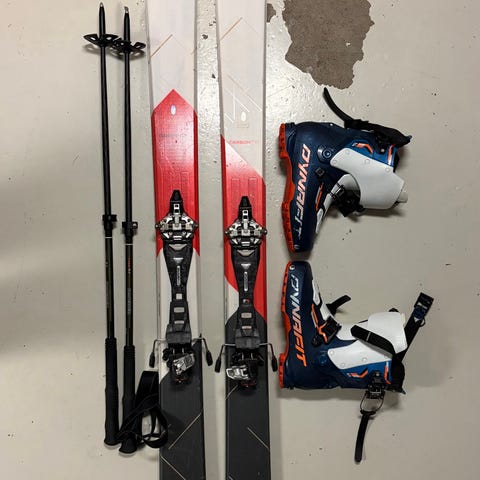 Ski: 170cm lang randobindinger Dynafit, passer til en kropp +/- 10cm.