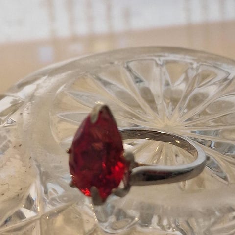 En lekker ring i rhodinert sølv 925 med Glossular Garnet5 x 5 mm + mange hvite Topazer.