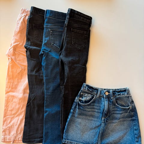 Klespakke pentøy/ skinnskjørt/shorts/ + 1 hettegenser.