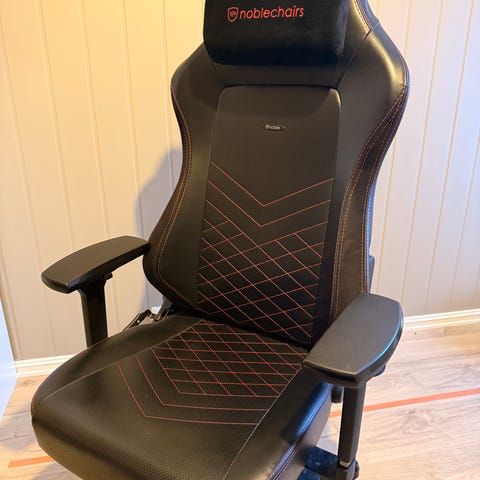 Jeg har personlig bare hatt noblechair stoler gjennom livet mitt fordi stolene er ekstremt bra til å game med. Den er justerbar fra alle kanter og har en unik bredde på stolen som gjør den så sykt behagelig.😀 Anbefales på det sterkeste!!!. Jeg selger denne stolen fordi gaming tiden min er over og må derfor selge mitt gaming utstyr.