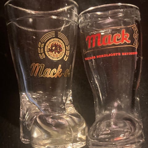 Selger to stykk små snapsglass / støvel glass fra mack.