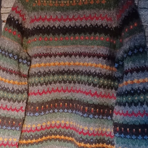 Selger en kjempelekker svartulvgenser i vamsegarn fra Rauma. Fargen er grønn/orange. Den er unisex og tilsvareren str M/L