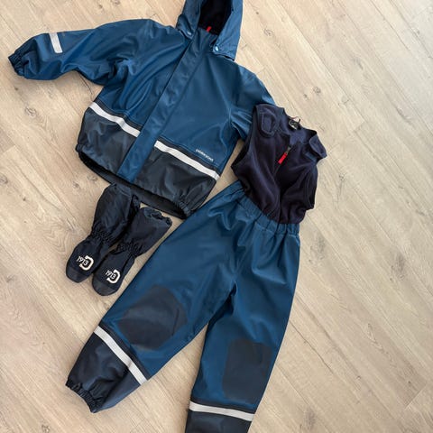Regnsett + regnhatt + støvler, passer for barn ca 3 år