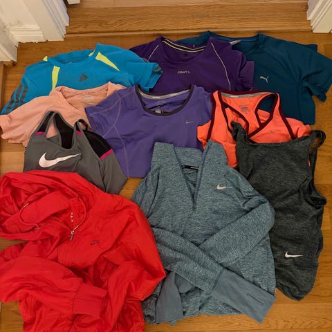 Pakke med en ubrukt Kari Traa tights, en pent brukt fra Nike med mobillommer, en tynn treningsgenser nærmest ubrukt, en Helly Hansen t skjorte(har noen små flekker ved hals), t skjorte fra johaug og en fra Nike. Str small/ medium, selges samlet for tenåringen i huset.