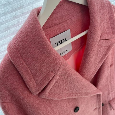 Selger en pen lyserosa kåpe/ytterjakke fra Zara. Nydelig a-formet snitt, perfekt for vår og sommer, både til kontoret og fest.